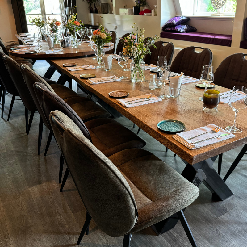 Deze ruimte is perfect voor grotere gezelschappen die willen vergaderen, borrelen of dineren.