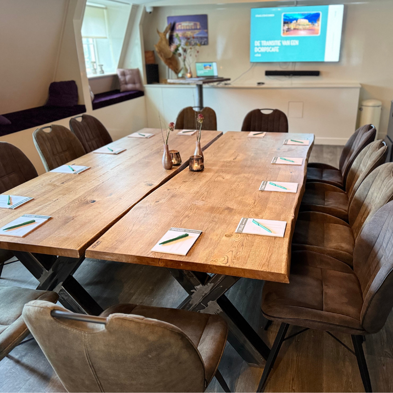 Een vergader arrangement is inclusief koffie/thee, bruis en plat water, snoepjes, koekjes, notitieblokken, pennen en gebruik van alle faciliteiten. Alle ruimtes beschikken over een groot LCD scherm, wifi en naar wens gebruik van flip-over. Iets lekkers bij de koffie, een lunch in de middag en na afloop borrelen of dineren? Informeer naar alle mogelijkheden.